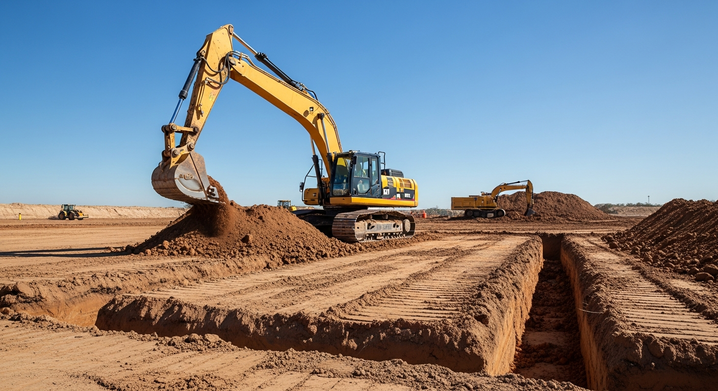 Remblayage de tranchées, compactage de sol certifié, préparation de surface pour dalles et stationnements.