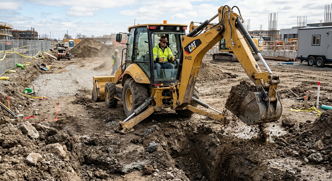 Remblayage de tranchées, compactage de sol certifié, préparation de surface pour dalles et stationnements.