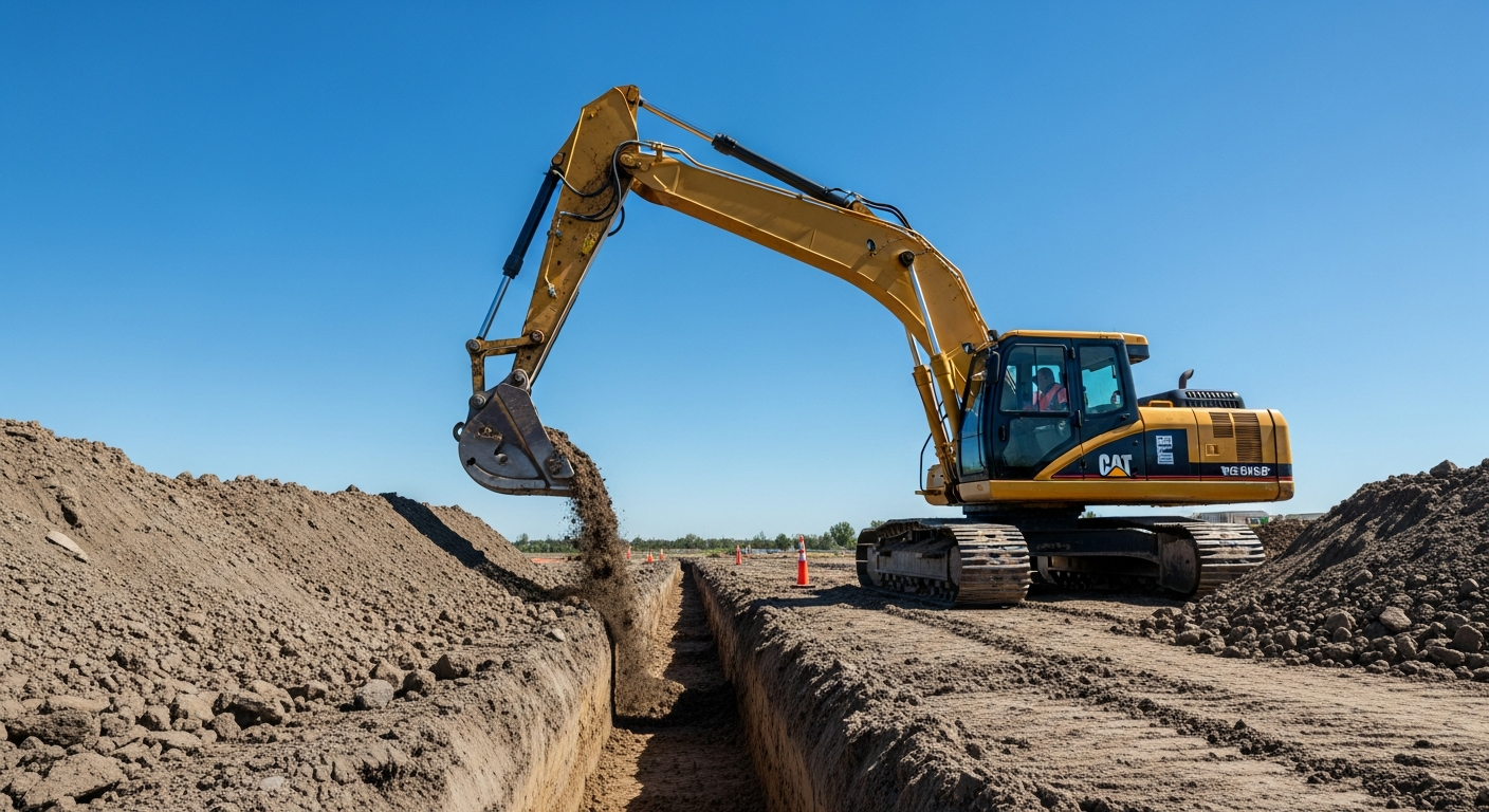 Remblayage de tranchées, compactage de sol certifié, préparation de surface pour dalles et stationnements.