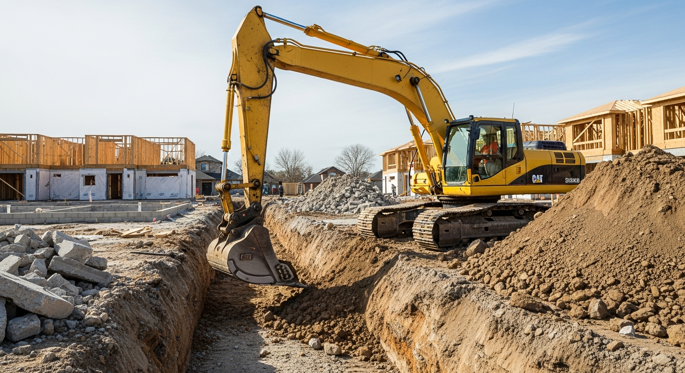 Remblayage de tranchées, compactage de sol certifié, préparation de surface pour dalles et stationnements.