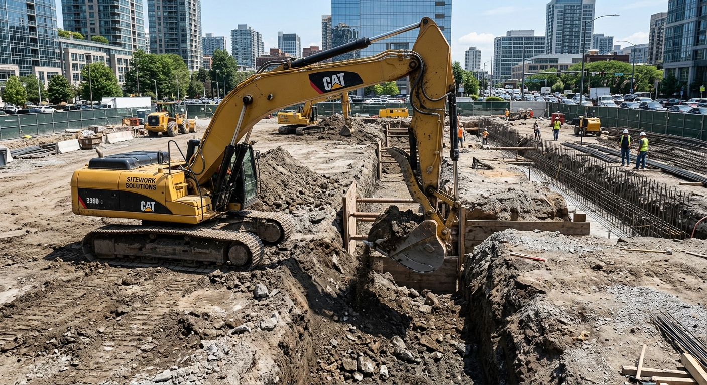 Remblayage de tranchées, compactage de sol certifié, préparation de surface pour dalles et stationnements.
