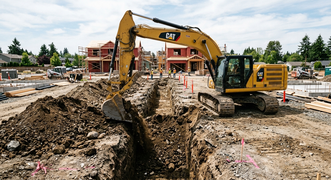 Remblayage de tranchées, compactage de sol certifié, préparation de surface pour dalles et stationnements.